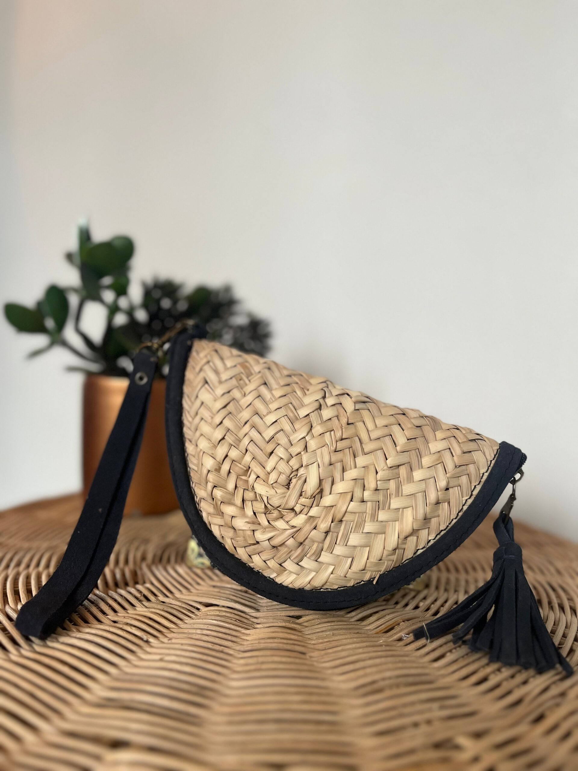 Stay stylish and hands-free with the “HILAL” handmade waist bag, crafted from natural handwoven palm leaves. Lightweight and elegant, it features a secure zipper closure and can be carried by hand or tucked under the arm as a mini bag. Perfect for daily use, beach outings, or casual adventures, this boho-chic accessory combines authenticity and modernity.