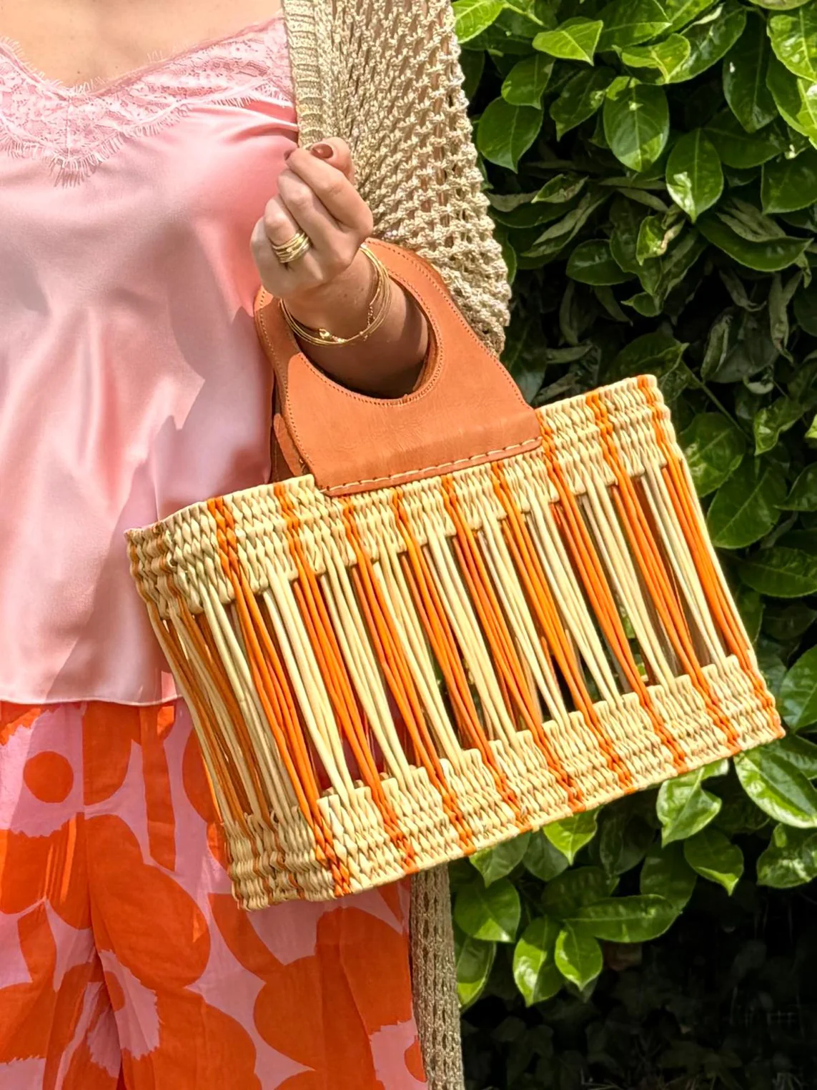 Style tip: Pair with a flowy dress, flat sandals, and a lightweight knit top for a refined summer look, ideal for city outings or beach days. Available in Natural, Orange, and Purple.