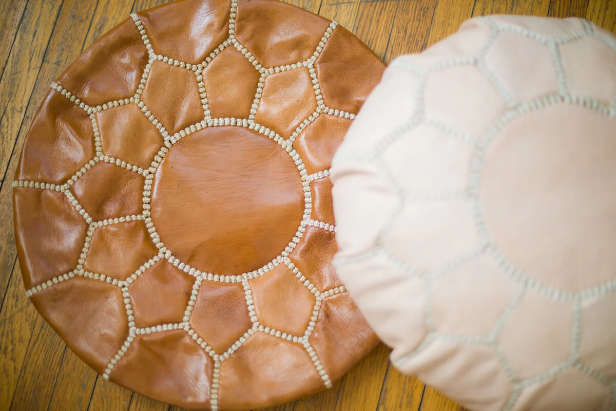 Leather Meditation Zafu – Handmade Moroccan Mini Pouf Floor Cushion