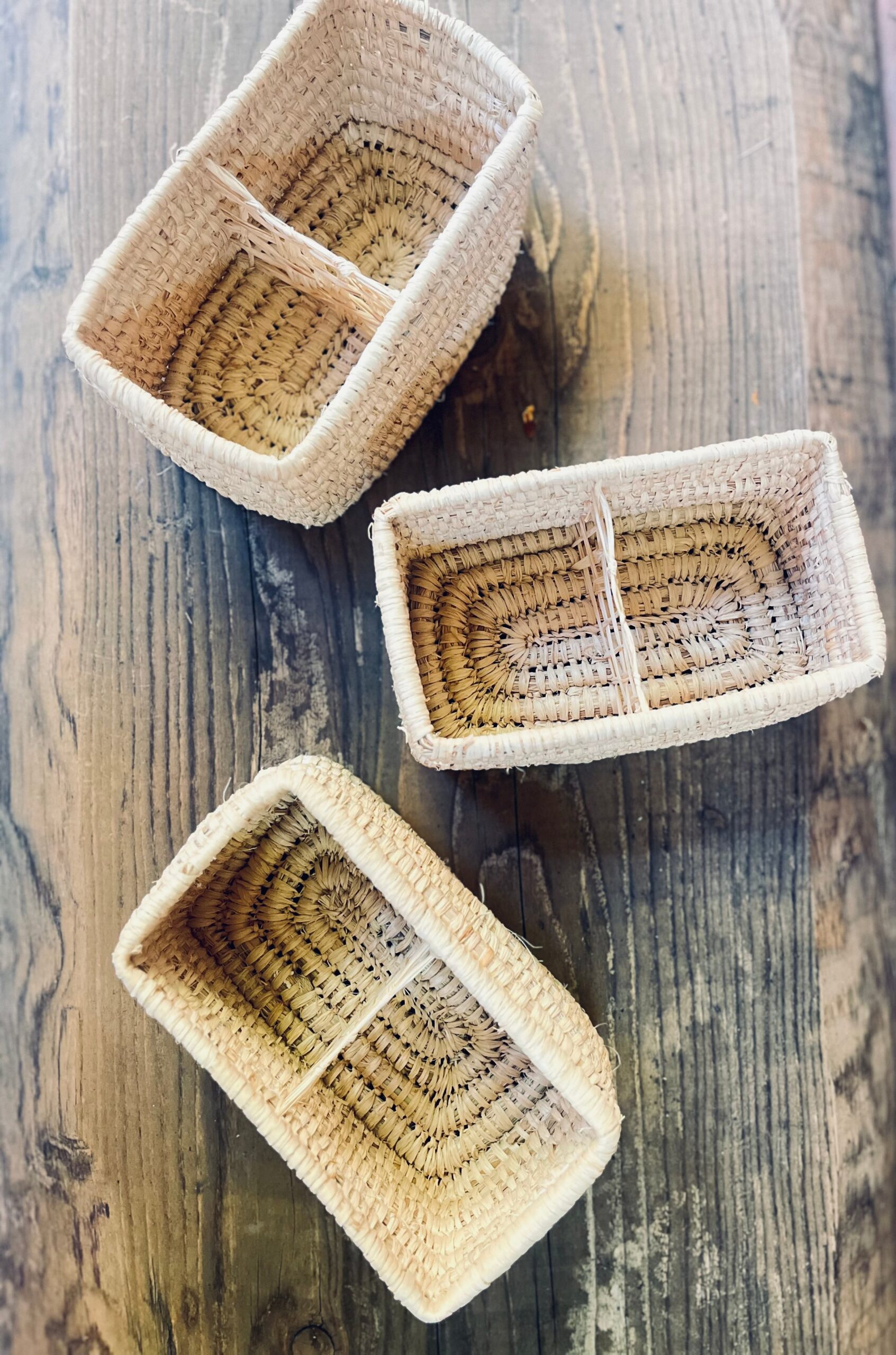 Organize your daily essentials with charm thanks to this small two-compartment basket, entirely handwoven from natural fibers. Perfect for neatly sorting small items or kitchen essentials: keys, oil/vinegar, cotton pads, jewelry… everything finds its place with style. Its two distinct compartments make storage simple and intuitive.